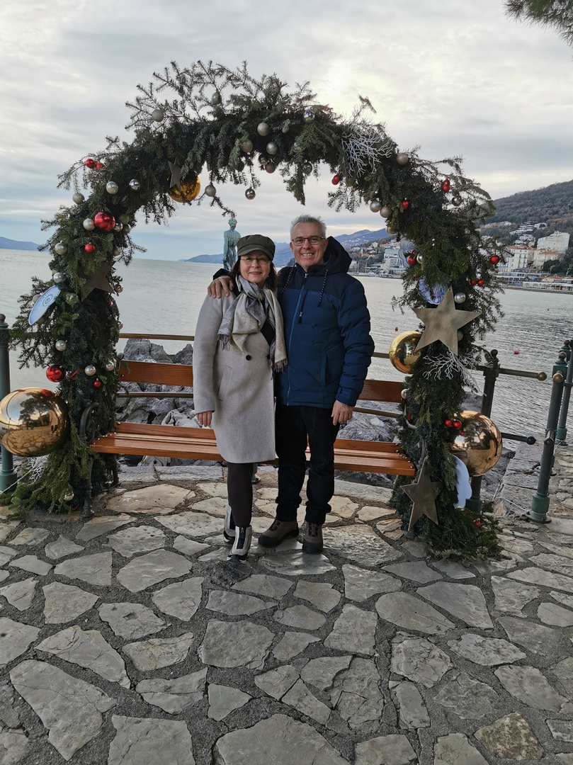 Weihnachten wird in Kroatien immer sehr schön gefeiert, so auch hier an der Promenade Lungomare in Opatija im letzten Jahr an Weihnachten 2024. In der Stadt Porec wird gerade alles für den bald beginnenden Adventsmarkt geschmückt und auf dem Platz die Schlittschuhbahn aufgebaut.