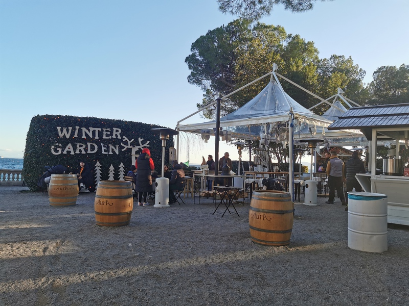 Wir haben gehört in Opatija soll es in den verschiedenen Parks und Plätzen wundervoll weihnachtlich dekoriert sein, abends ist alles sehr schön beleuchtet. Wir gehen dort stilvoll im Cafe Wagner eine Sachertorte essen und warten bis die Sonne im Meer versinkt.